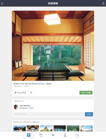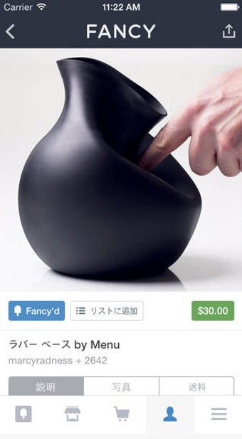 登録後、世界中のユーザーやショップが投稿したインテリア、ファッション、家電、雑貨など様々なアイテムを閲覧できるホーム画面が表示されます。その中で気に入ったものがあれば「Fancyする」ボタンを押して自分のお気に入りコレクションに追加したり、購入したりできます(一部のアイテムは購入できません)。